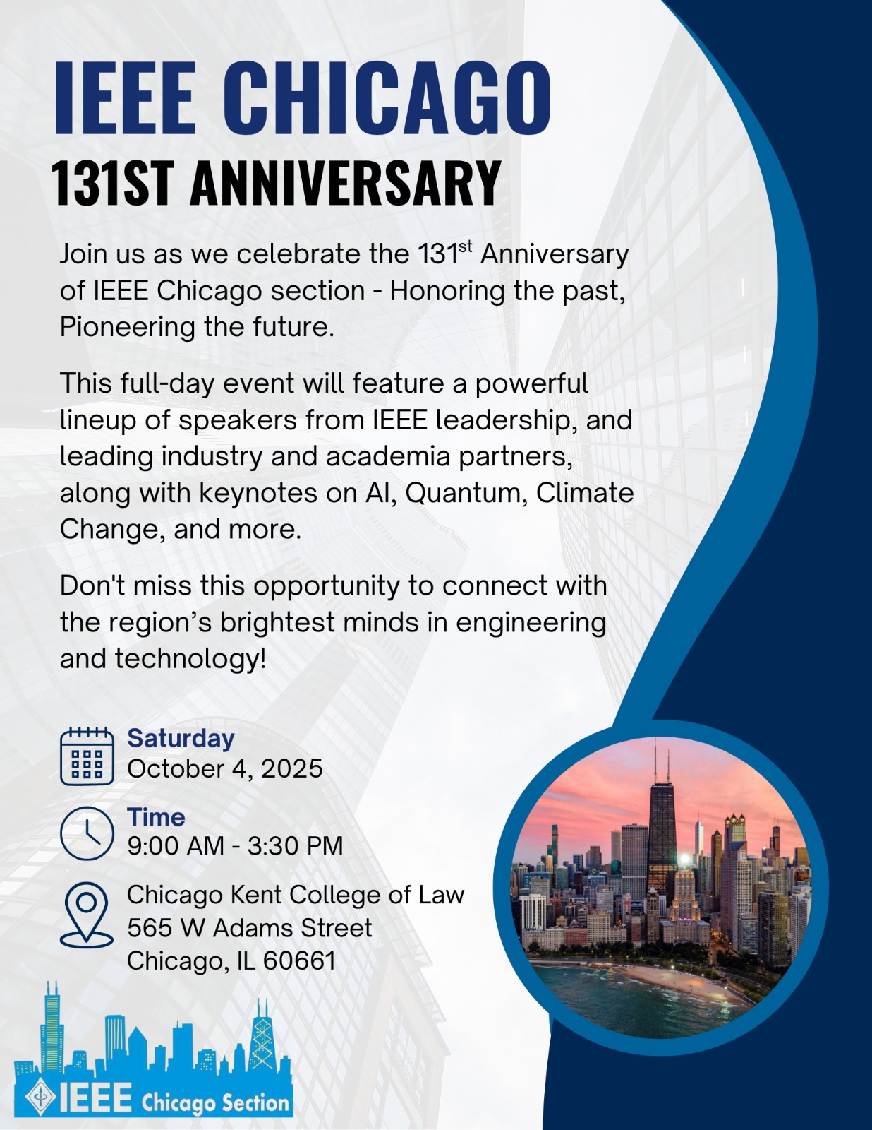 The IEEE-Chicago Section Awards Committee is seeking nominations for the 2024 Awards by November 15, 2024. The Annual Awards & Recognition event honors members who have made valuable contributions to the IEEE-Chicago Section. It also honors organizations who [...]